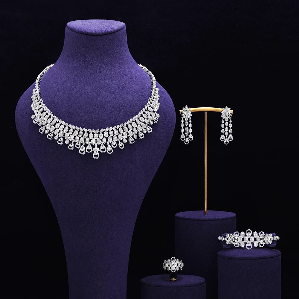 طقم مجوهرات فاخر بتصميم متدلٍ لامع