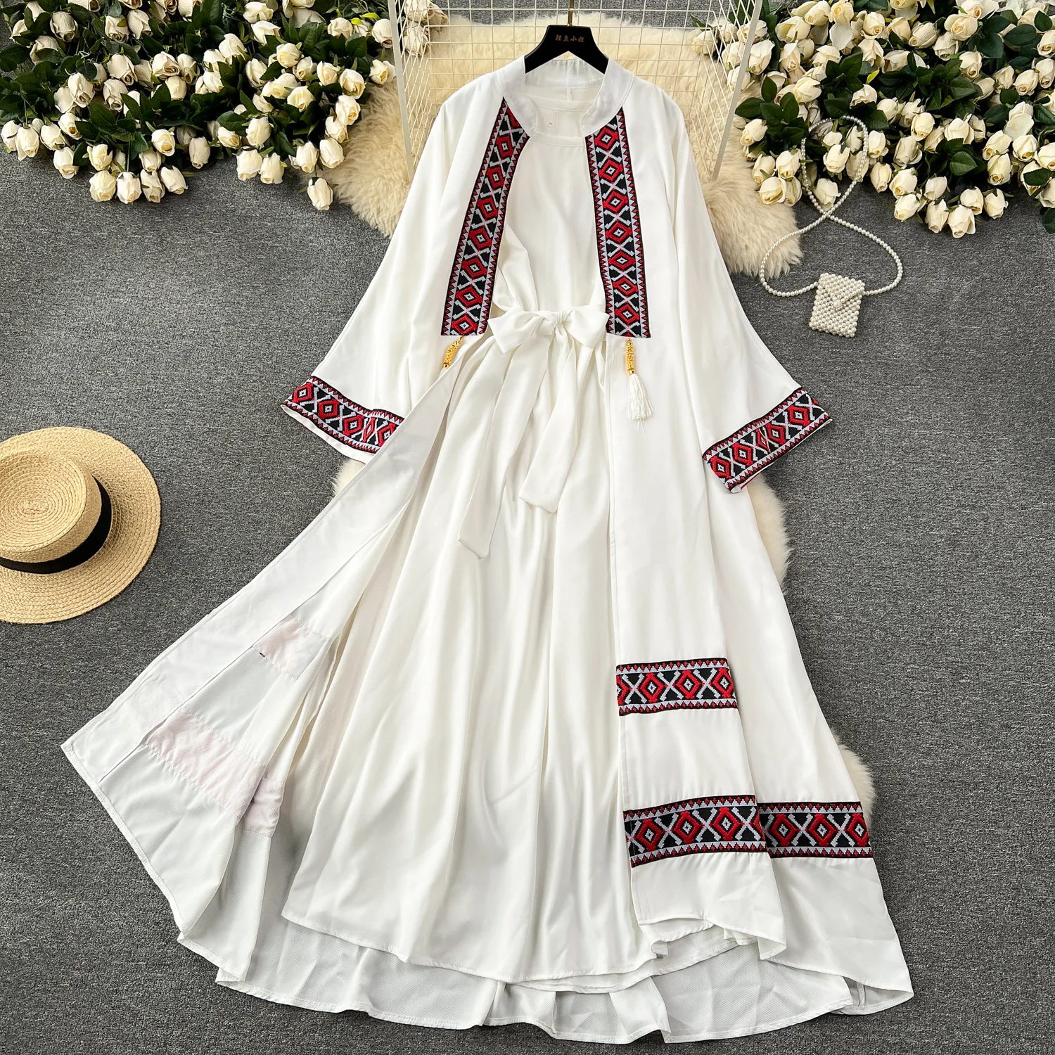 فستان طويل بنقشة تراثية عمودية