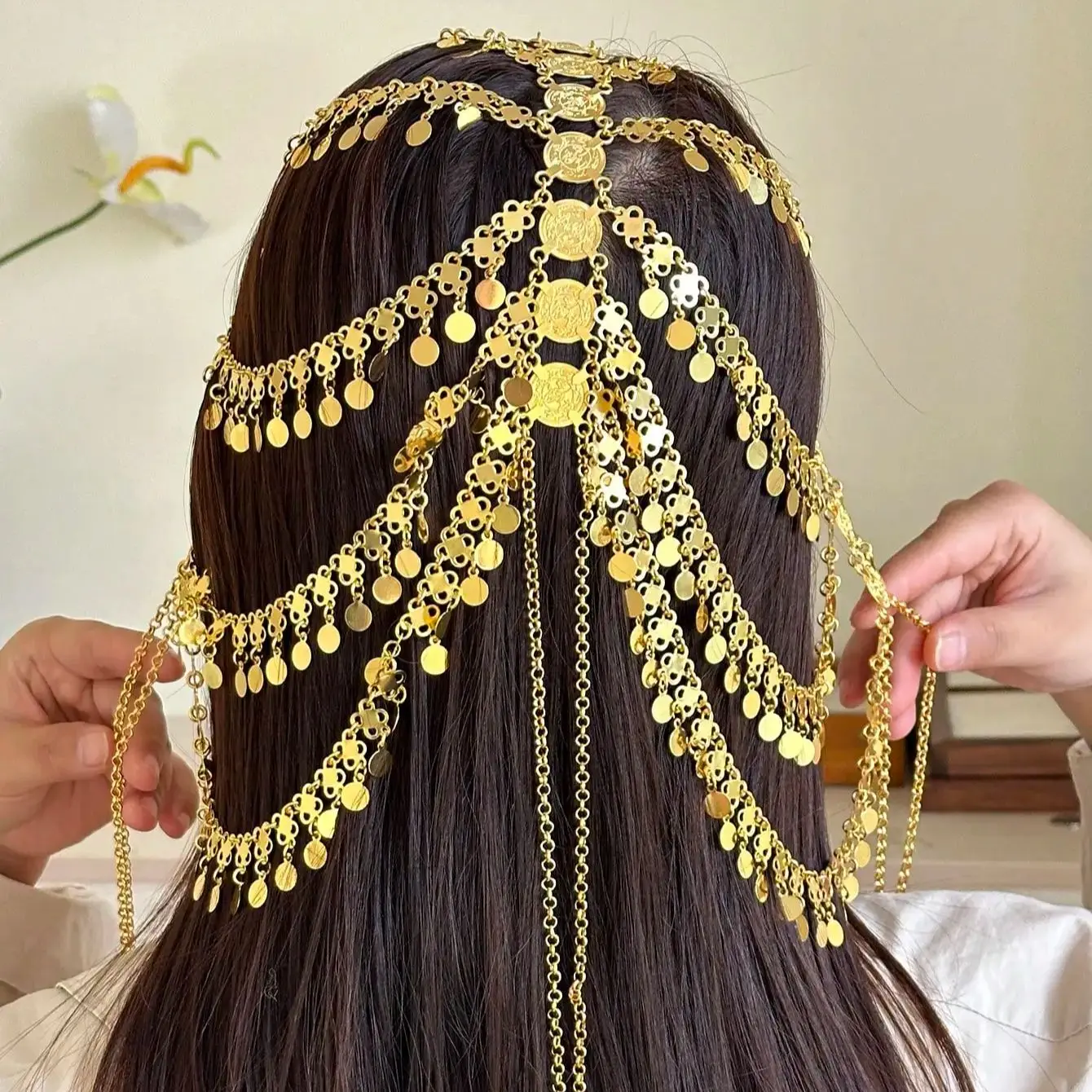 قلادة رأس ذهبية شرقية متعددة الطبقات