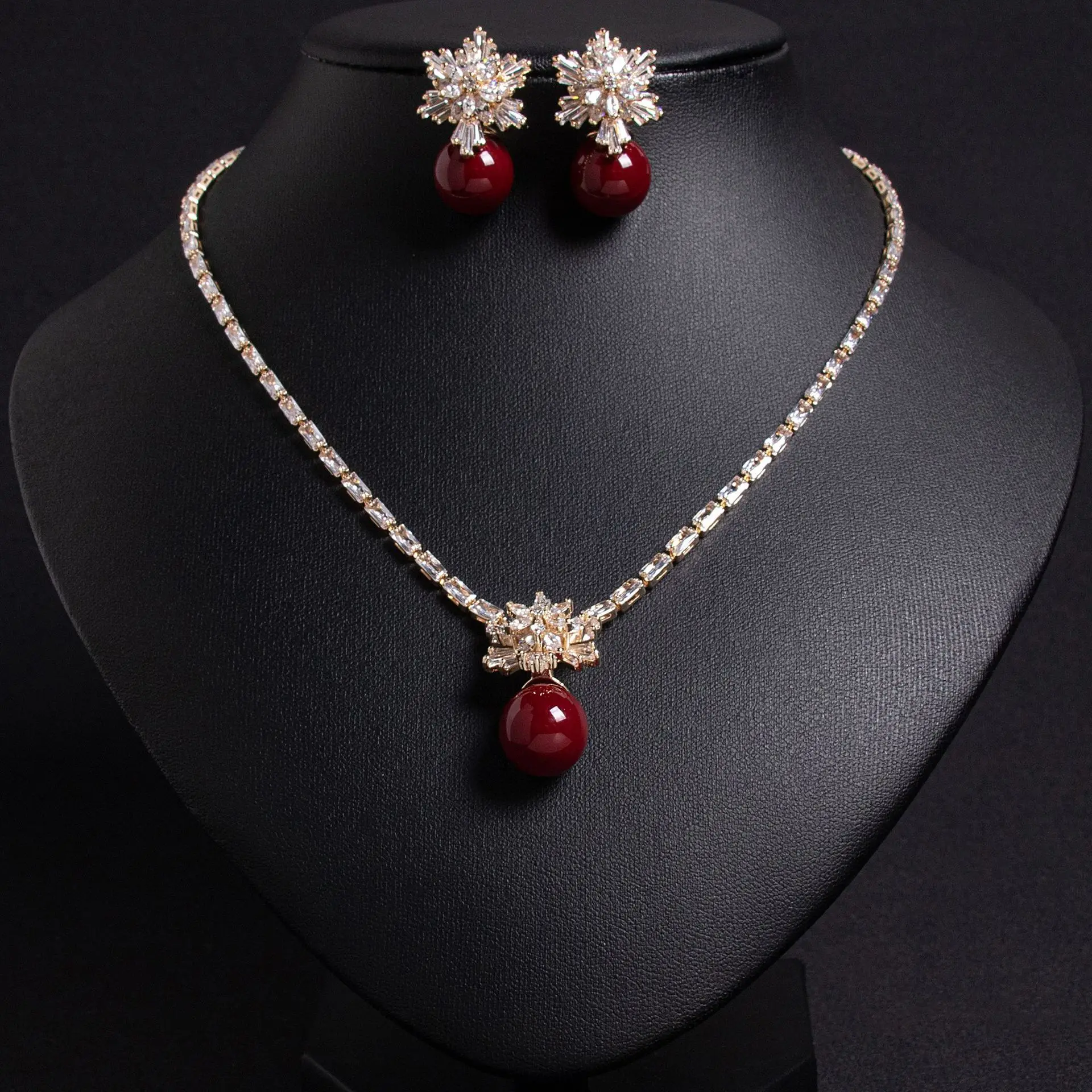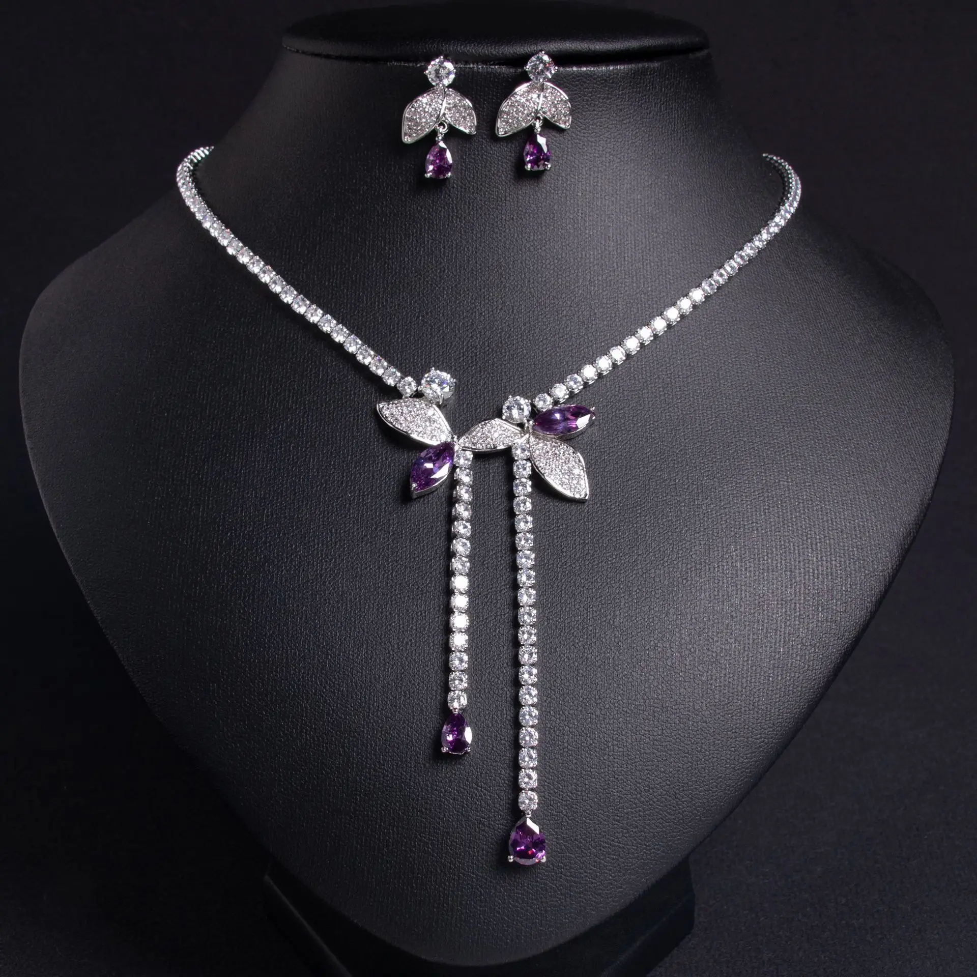 طقم مجوهرات فاخر بحجر خمري متدلٍ