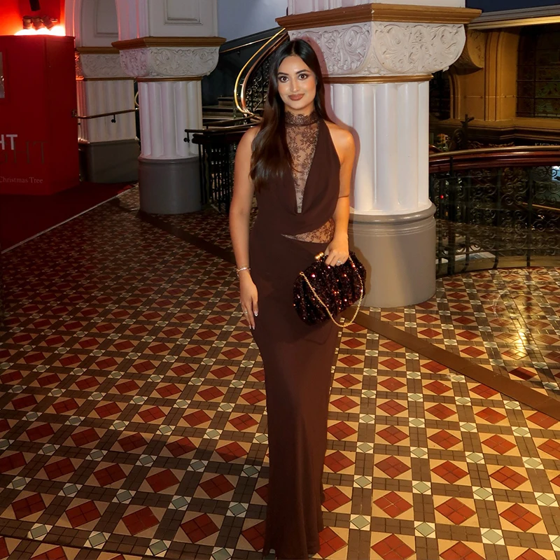 فستان أسود طويل بتصميم دانتيل شفاف