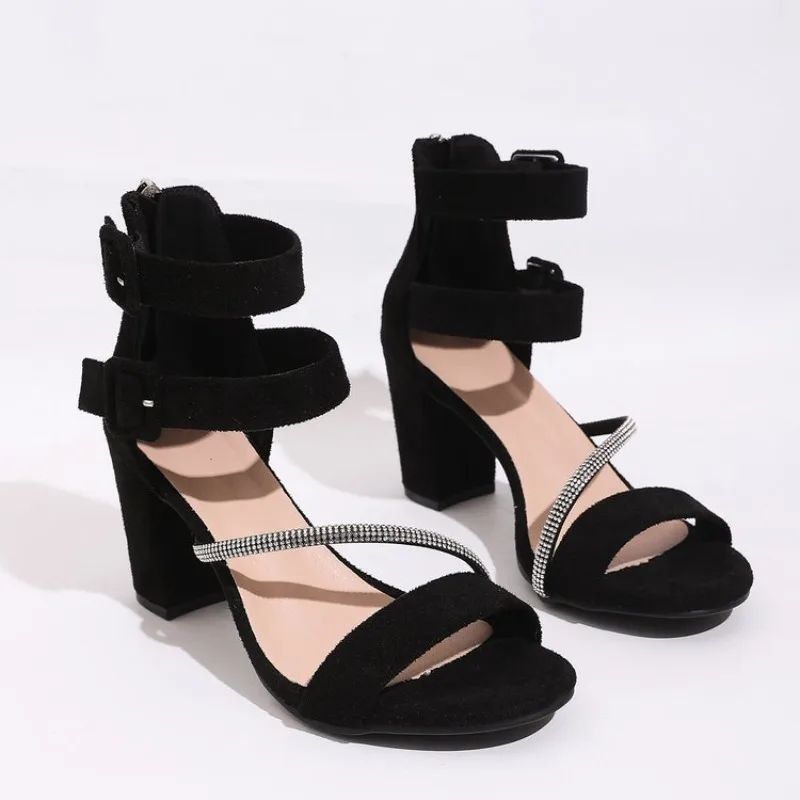 صندل كعب أسود بتصميم متقاطع