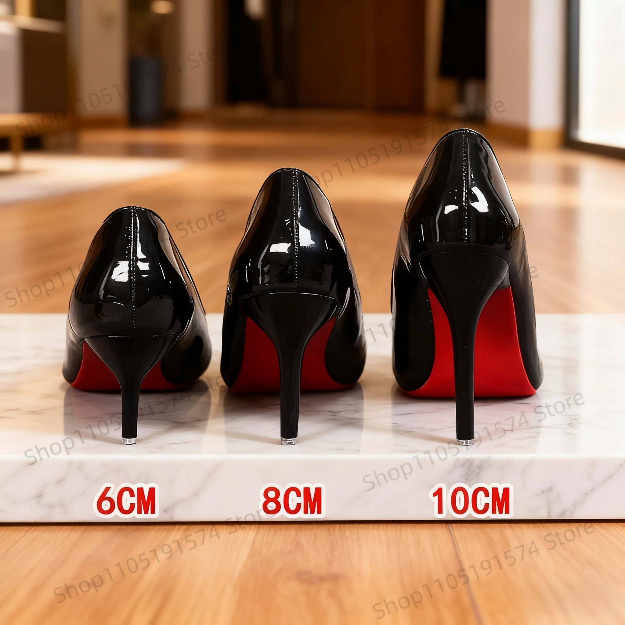 حذاء كعب أسود لامع بعدة ارتفاعات