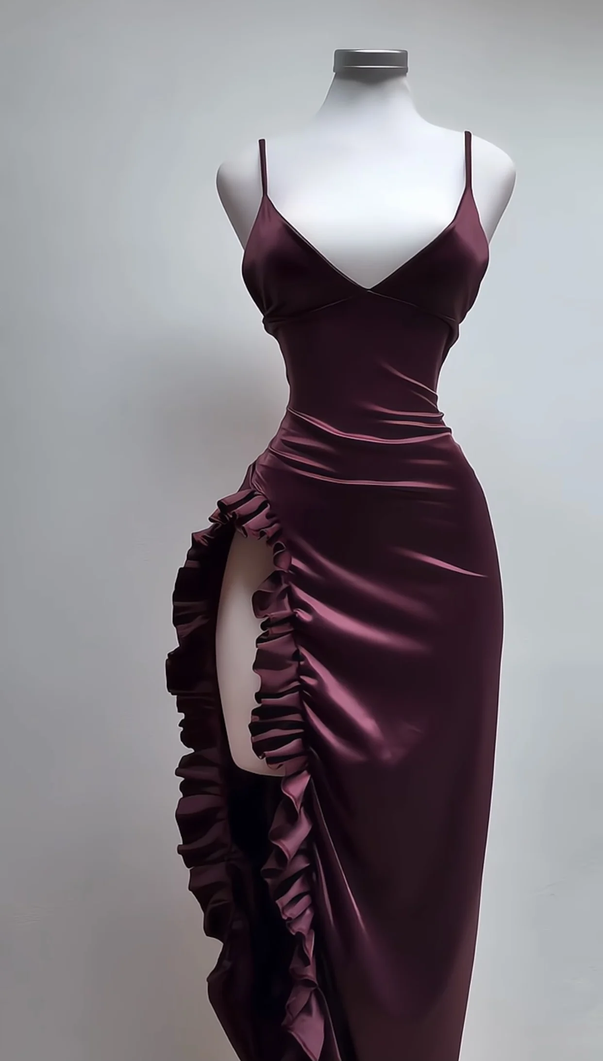 فستان ساتان خمري بفتحة جانبية أنيقة