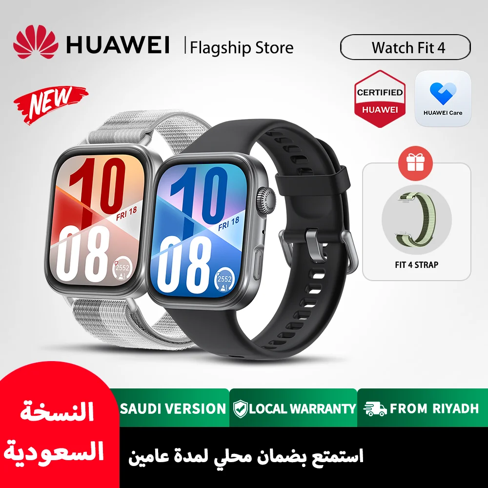 ساعة هواوي الذكية من سلسلة WATCH FIT 4، شاشة 1.82 بوصة، رياضات خارجية احترافية، عمر بطارية يصل إلى 10 أيام، تعمل بنظامي iOS وAndroid