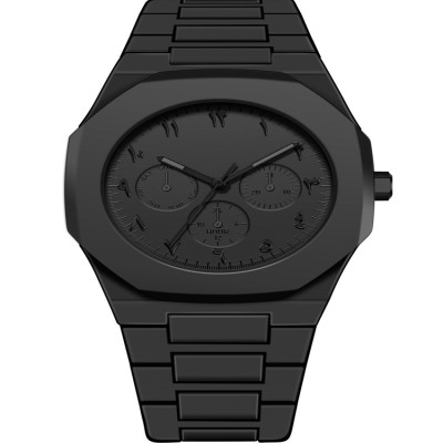 ساعة كوارتز رجالية مقاومة للماء من البلاستيك الأسود بثلاثة عيون، ساعة عمل عصرية بمينا رقمي عربي في الشرق الأوسط