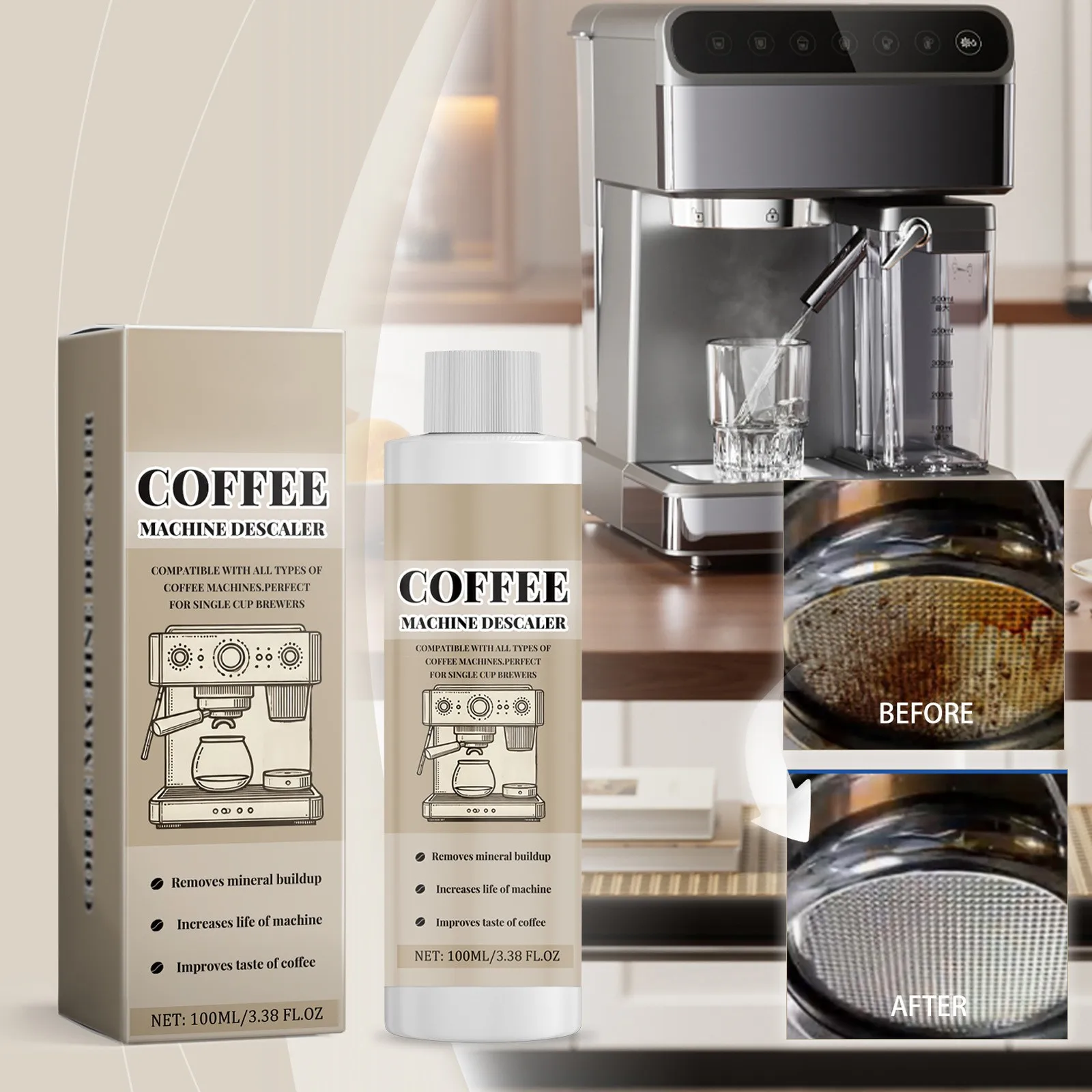محلول إزالة الترسبات لآلة القهوة، إزالة الترسبات العالمية لآلات القهوة، محلول إزالة الترسبات الفعال، منظف 100 مل
