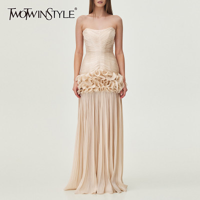 فساتين تنحيف الفطريات الصلبة من TWOTWINSTYLE للنساء بدون حمالات بدون أكمام مرقعة طيات فستان ميدي ملابس نسائية جديدة