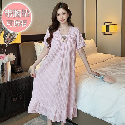 M-5XL حجم كبير بيجامة قطنية المرأة القطن قصير الأكمام ثوب النوم مع منصات الصدر الأميرة فضفاضة المتسكعون ملابس خارجية المنزل