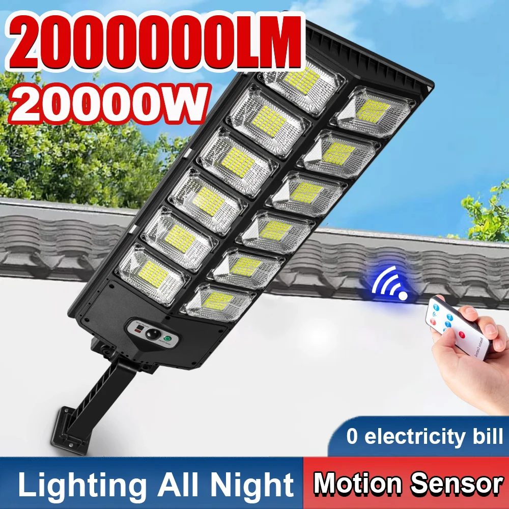 2000000 LM مصباح شمسي قوي للغاية مع جهاز تحكم عن بعد خارجي يعمل بالطاقة الشمسية ضوء ساحة الشارع IP65 أضواء حديقة مقاومة للماء