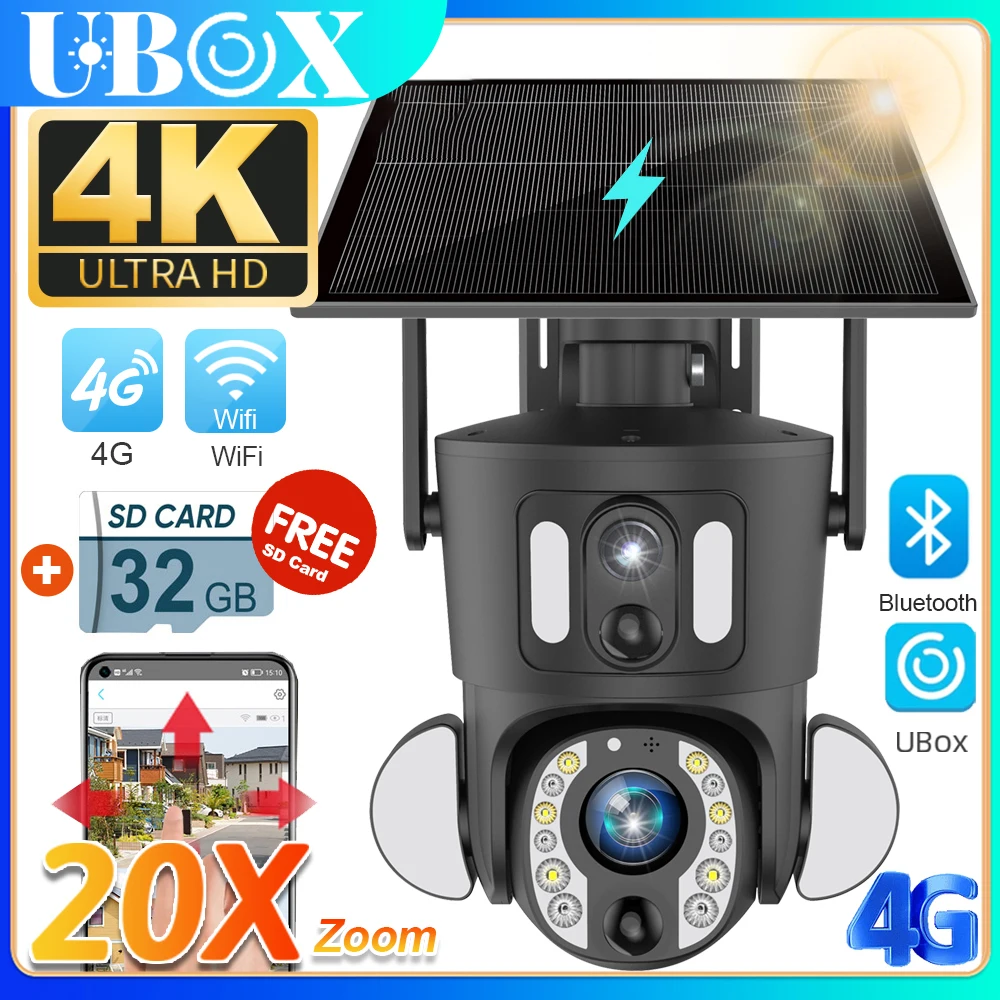 كاميرا Ubox 4K 8MP كاميرا تعمل بالطاقة الشمسية