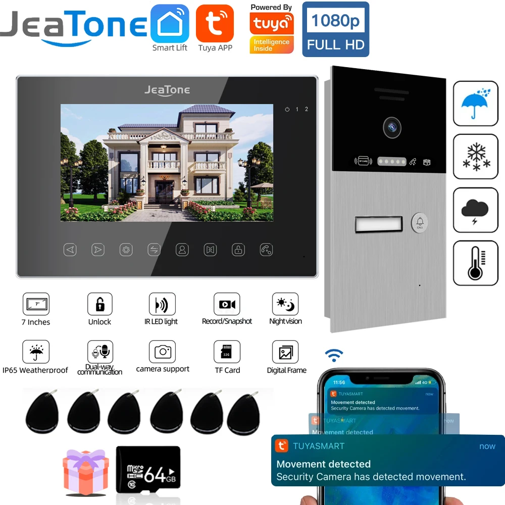 7 بوصة تويا التطبيق الذكي 1080P فيديو إنترفون لاسلكي واي فاي 1-4 الأسر بطاقة RFIC جرس الباب باب فيلا إنترفون البواب