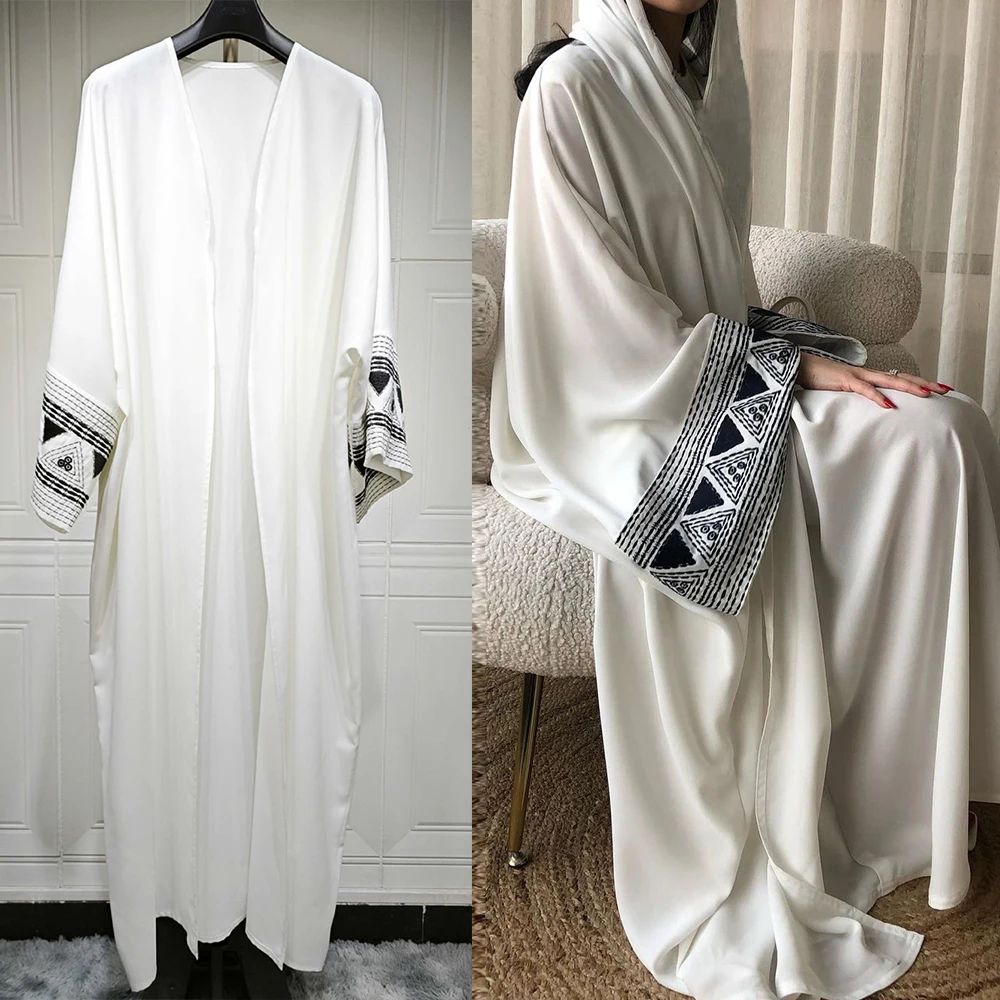 كيمونو أبيض مفتوح للنساء ، عباية دبي ، تطريز فاخر ، فستان قفطان إسلامي ، فستان قفطان إسلامي ، كباية ، عبايات دمشقية ، فساتين جالابية