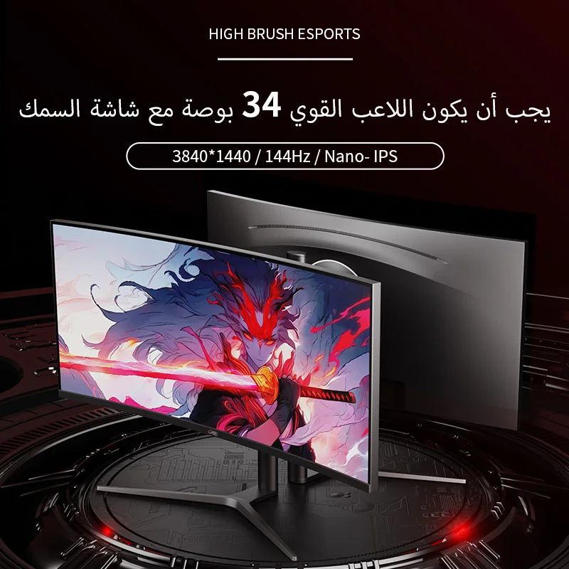 شاشة بي سي للألعاب المنحنية فائقة العرض والدقة ChonSun مقاس 34 بوصة WQHD- 4K، (3440x1440) شاشة منحنية 1900R، بمعدل تحديث 144 هرتز مع إمكانية الرفع والتدوير