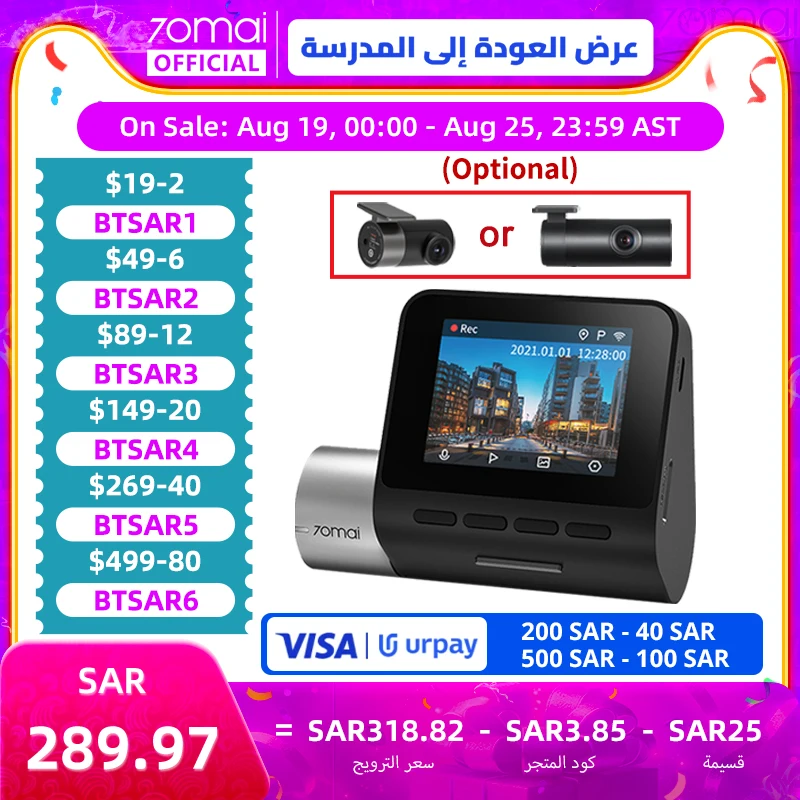 داش كام كاميرا امامية وخلفية برو بلس تسجيل 24 ساعة اثناء التوقف 140 درجة