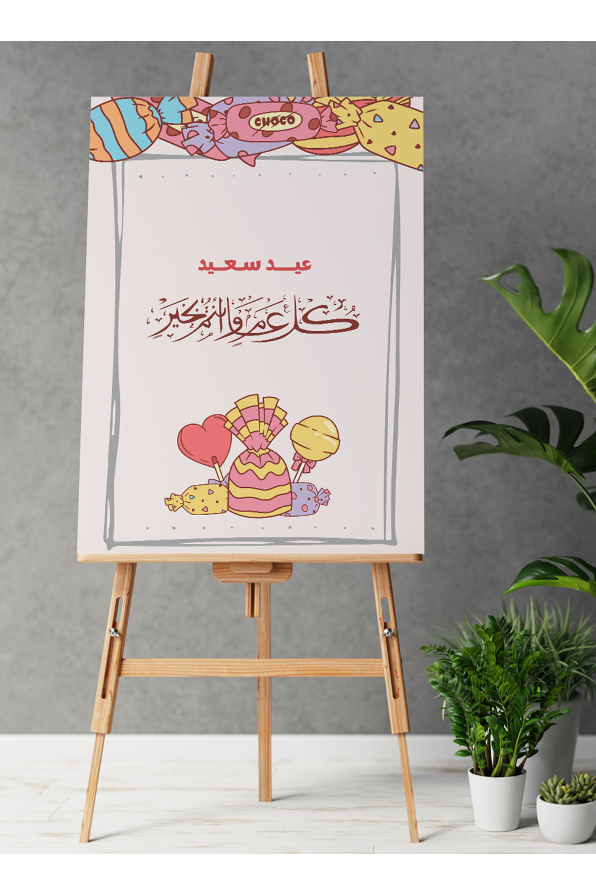 قطعة ديكورية بقاعدة أنيقة "عيد مبارك - نتمنى لكم السعادة كل عام"