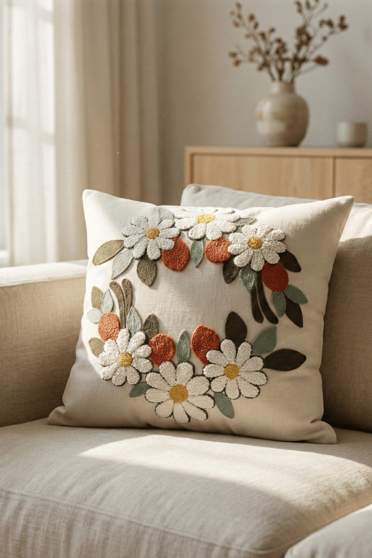 غطاء وسادة من قماش الأوليفين مطرز بتفاصيل زهور من بولدان، مقاس 43×43 سم