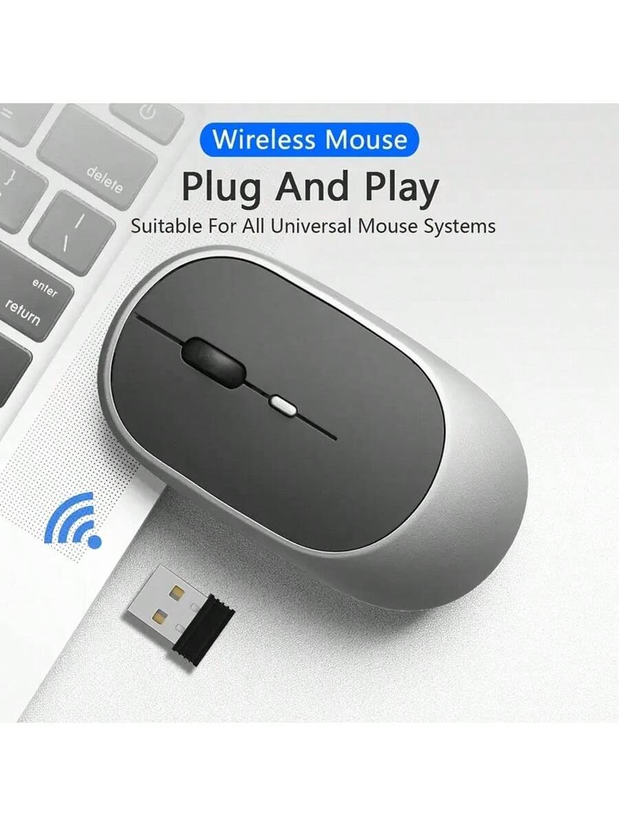 فأرة ألعاب لاسلكية صامتة وقابلة لإعادة الشحن 2.4 جيجا هرتز بمنفذ شحن Type-c، وخلفية قوس ، مناسبة للا