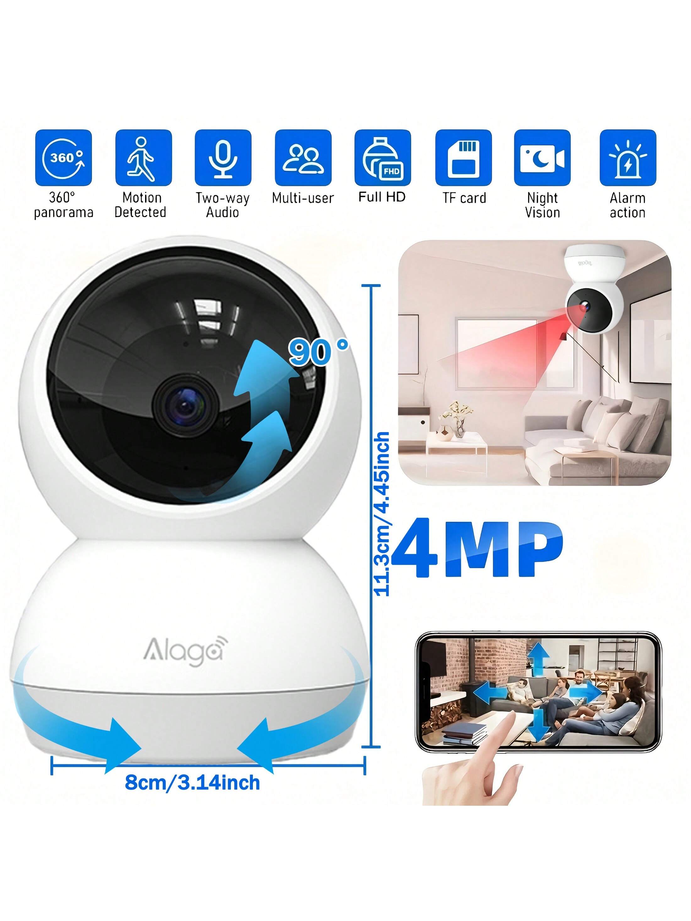 كاميرا أمان منزلية لاسلكية Alaga 2K بزاوية رؤية 360 درجة، تدعم اتصال الواي فاي 5 جيجا/2.4 جيجا، من م