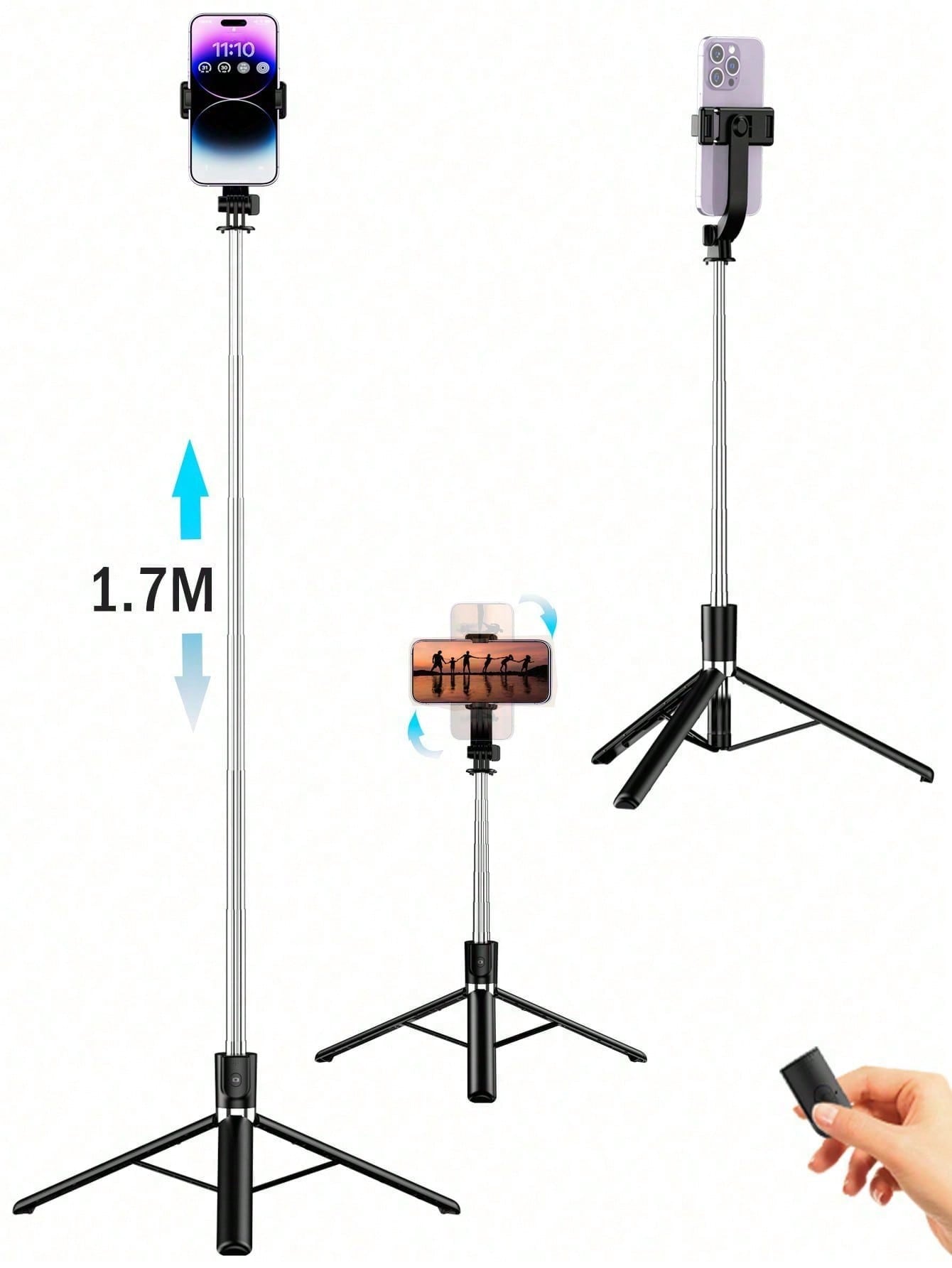 عصا سيلفي وحامل ثلاثي القوائم لاسلكي بطول 1700 مم، قابل للتمديد والطي لهواتف الذكية، تصوير مستقر وبث