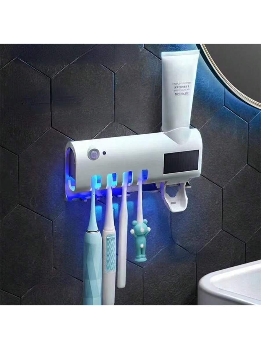 RAF قاعدة فرشاة أسنان معقمة بالأشعة فوق البنفسجية وموزع معجون أسنان ذكي، قابل للتثبيت على الحائط ب-