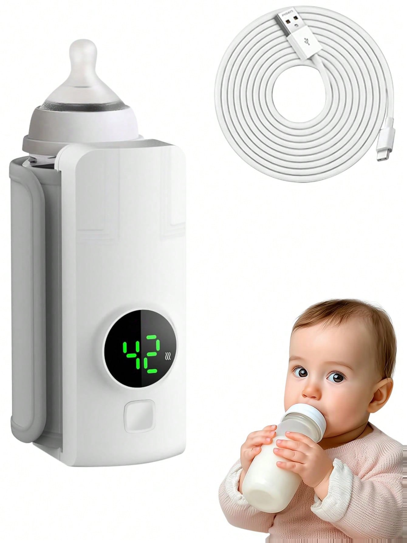 غطاء زجاجة دافئة قابلة للشحن بشاشة عرض درجة الحرارة 6 مستويات، سخان حليب محمول، يحافظ على درجة الحرا