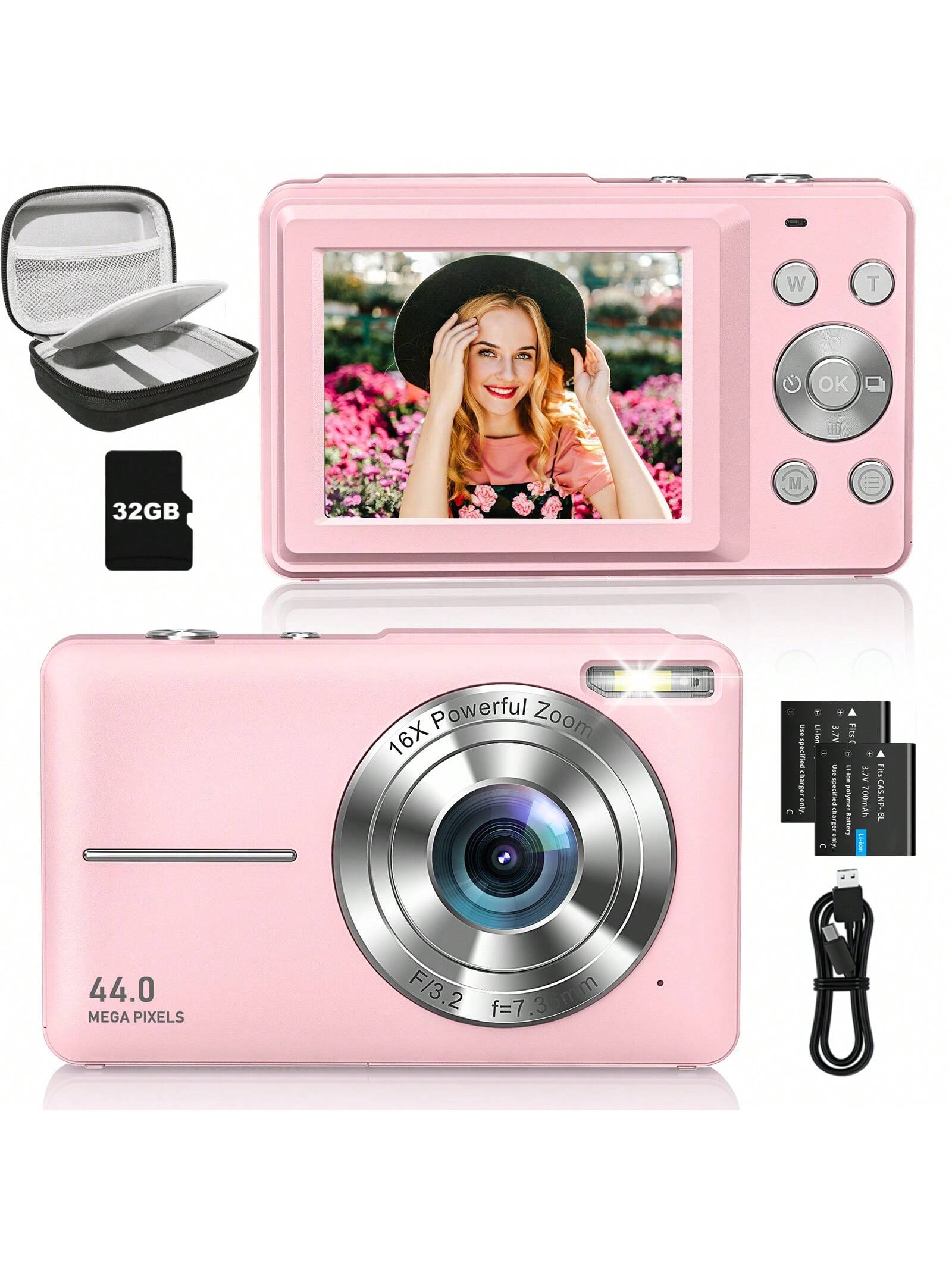 مجموعة كاميرا رقمية CAMKORY + حقيبة الكاميرا، كاميرا تصوير عادية 44 ميجابكسل بدقة 1080 بكسل مع بطاقة