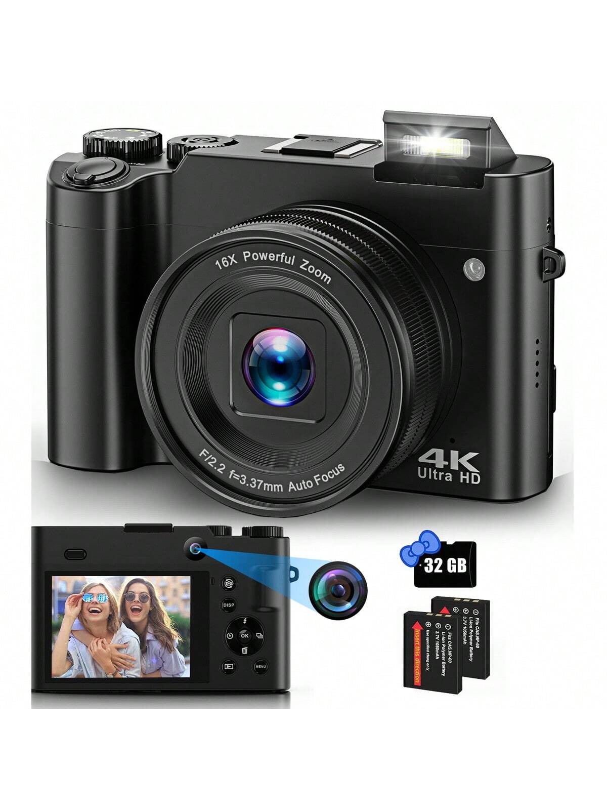 Nicamery كاميرا رقمية 4K، كاميرا خلفية وأمامية 64 ميجابكسل للتصوير والفيديو مع بؤرة تلقائية ومضاد لل