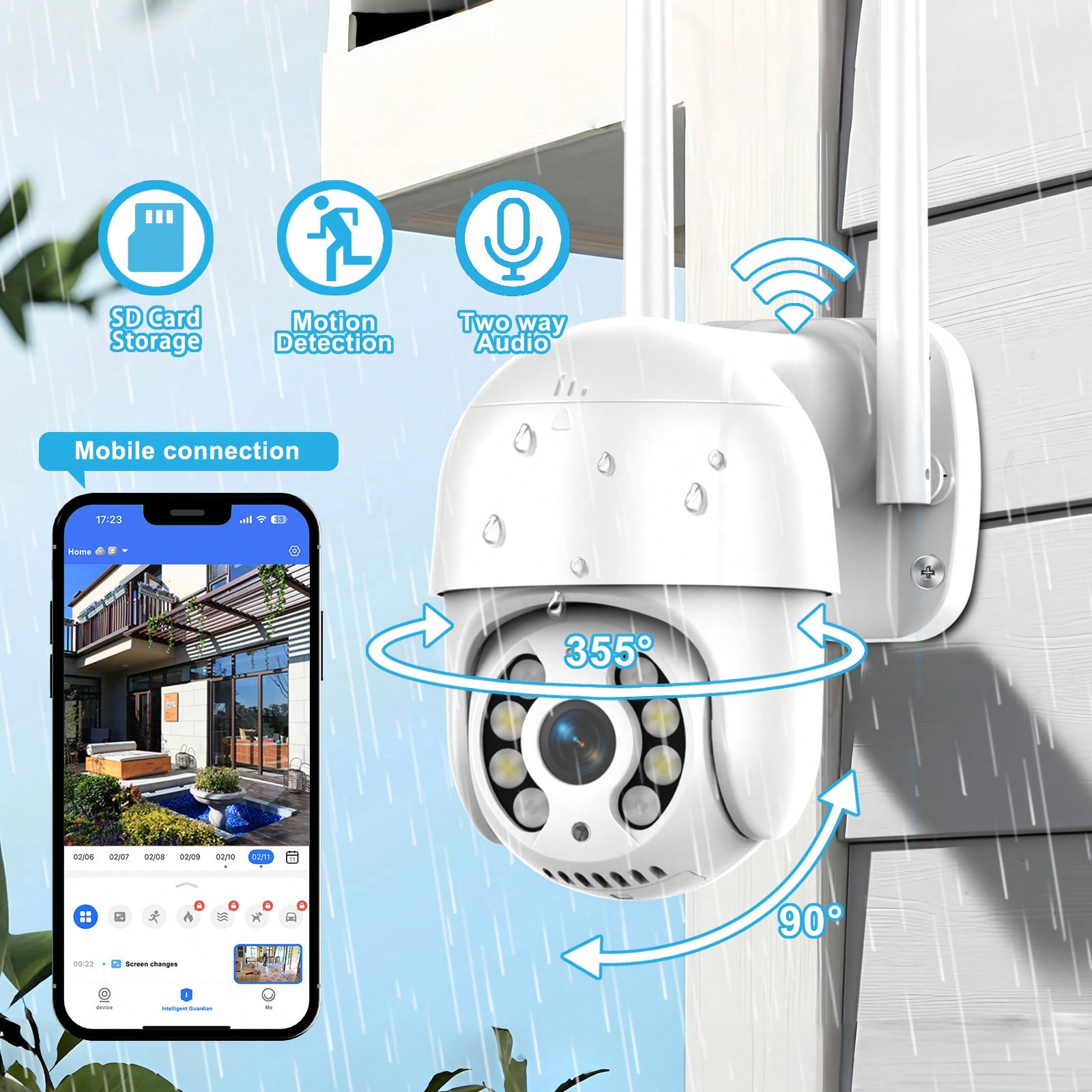 كاميرا أمان بدقة 4 ميجابكسل كاملة HD مع رؤية ليلية تحت الأشعة تحت الحمراء، صوت ثنائي الاتجاه، كشف حر