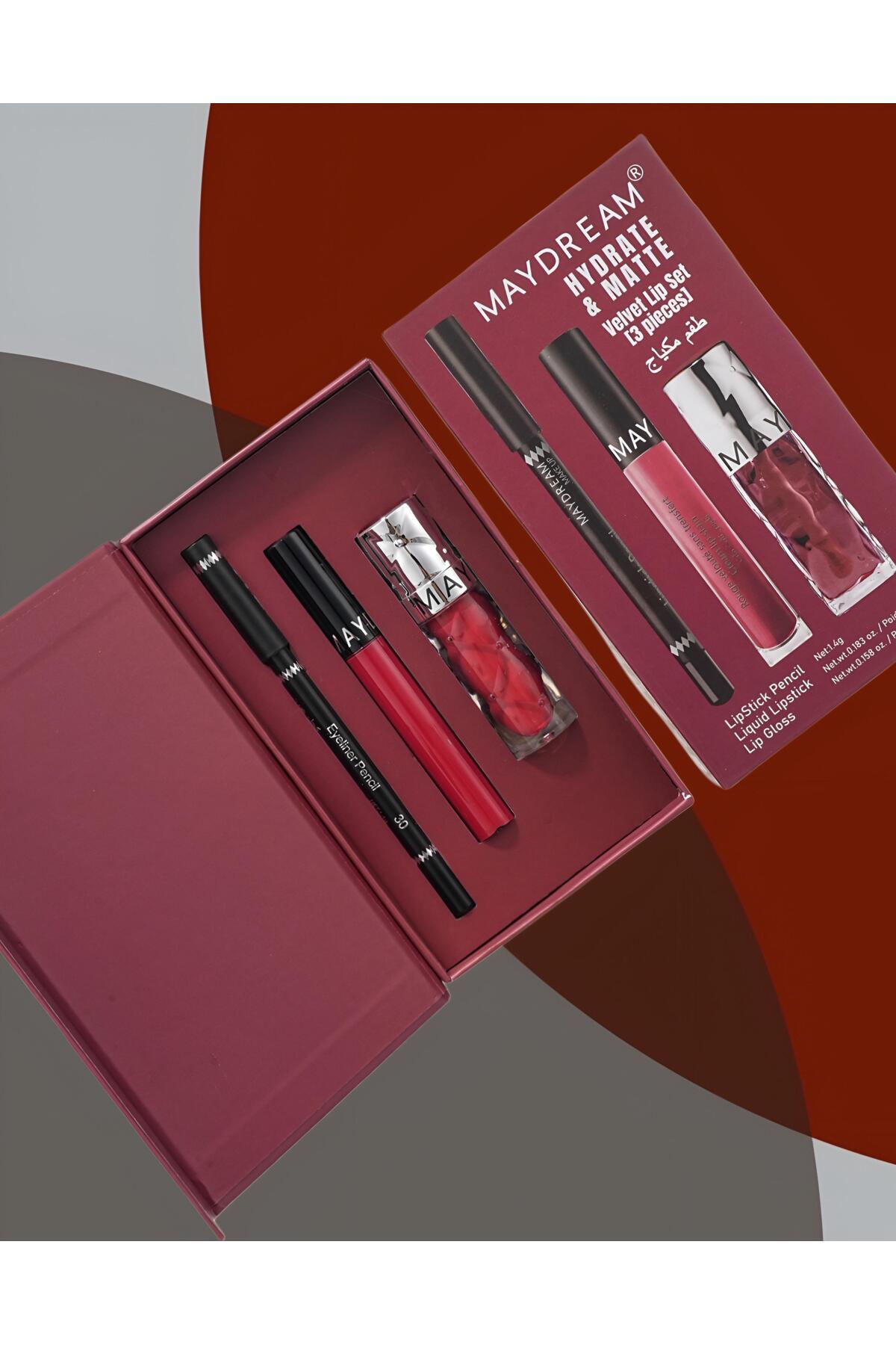 مجموعة أحمر شفاه سائل + محدد عيون + مرطب شفاه