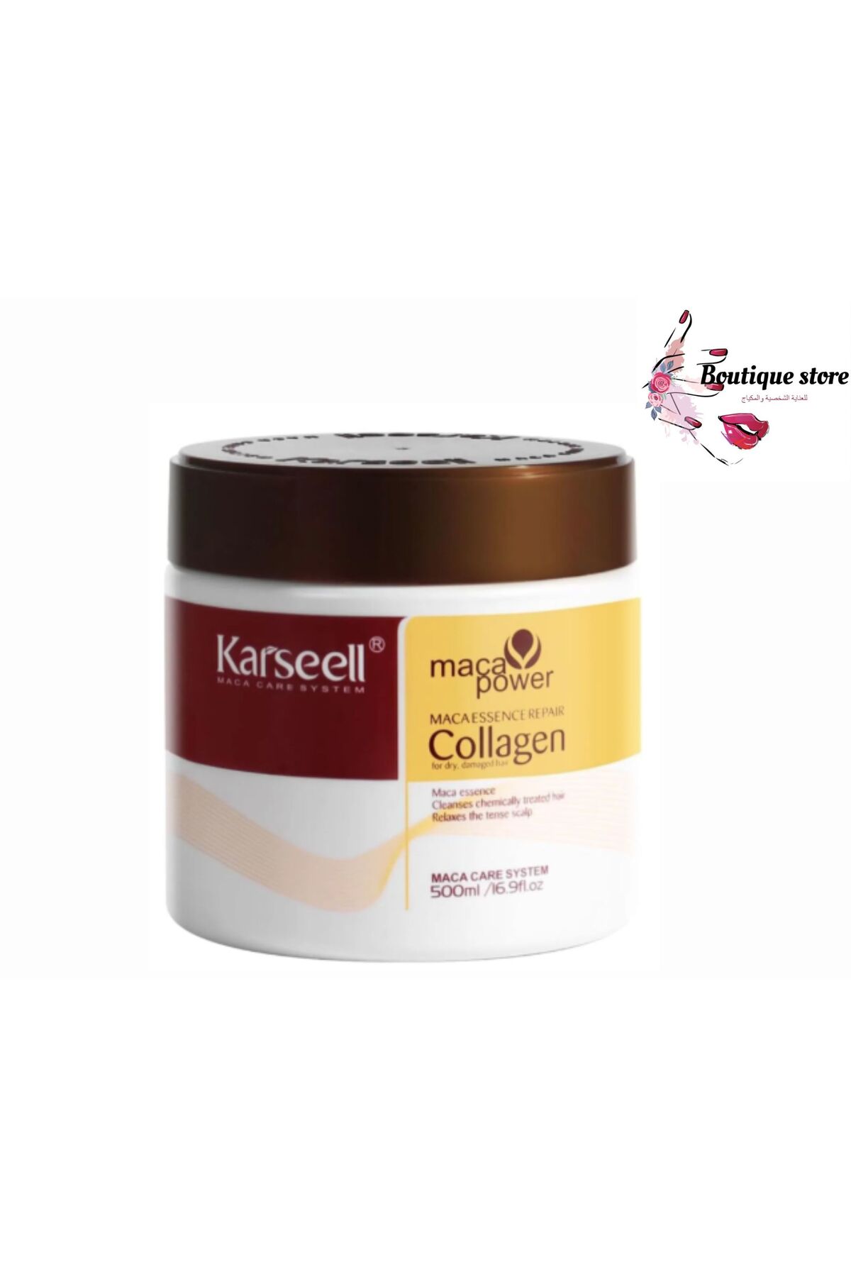 قناع الشعر لإصلاح الشعر وترطيبه وتألقه مع مستخلص الكولاجين والماكا مع بروتين القمح 500 مل