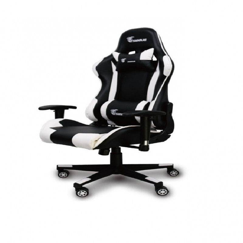 كرسي ألعاب فيديو جلد قابل للدوران مع مسند ودعم أسفل الظهر,أسود -أبيض