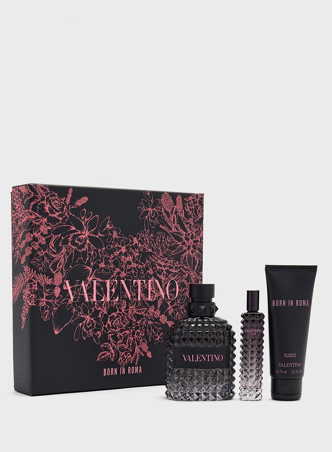 مجموعة هدية فالنتينو بورن إن روما أومو - أو دي تواليت 100 مل، أو دي تواليت 15 مل (بخاخ سفر) وجل استح