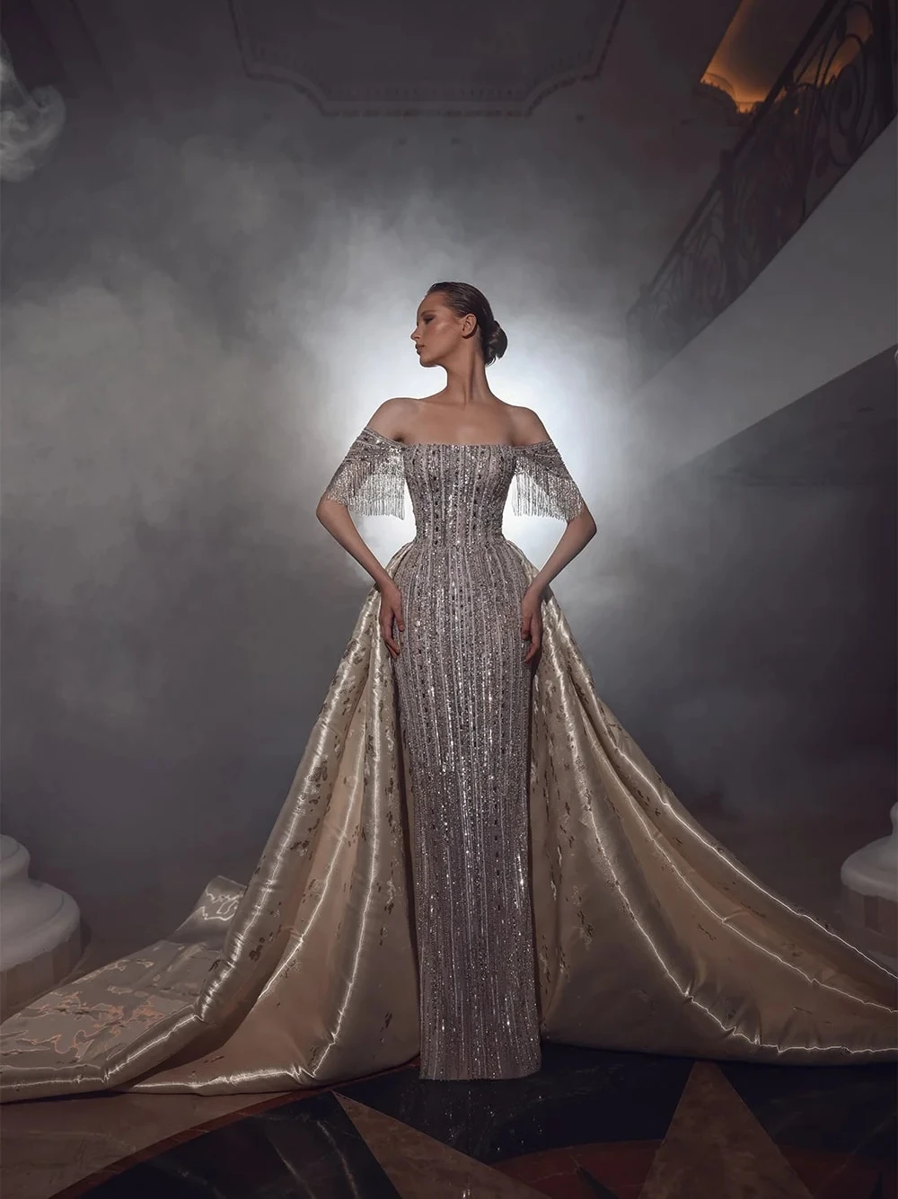 فستان حفلات موسيقية فاخر مطرز بالخرز