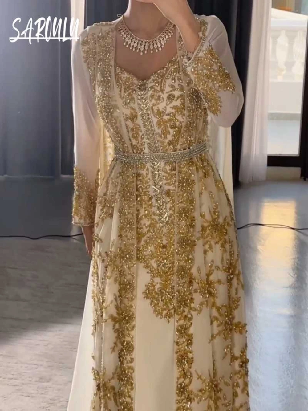 فستان سهرة قفطان ملكي دقيق للمشاهير مخصص للنساء قفطان على شكل حرف A مطرز بالترتر لحفلات الزفاف فستان حفلات وصول جديد
