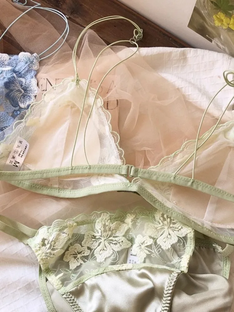 سوبر مثير الفرنسية الرجعية الصدرية مجموعة غريبة التطريز الجوف خارج شبكة لا Underwire مثلث كوب النساء الملابس الداخلية 2026 NewMOYISU مثير