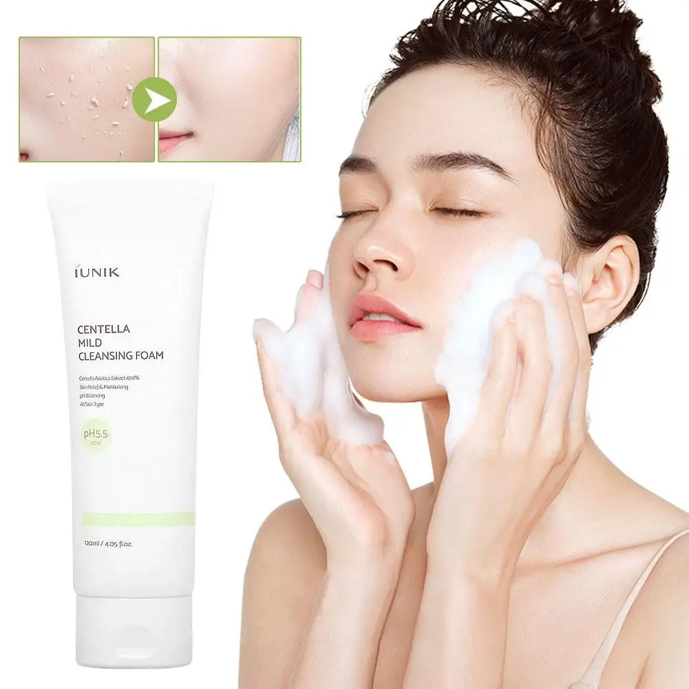 منظف IUNIK Centella Asiatica 120 مل، غسول وجه رغوي ذاتيًا، ينظف عميق للمسام، يزيل الزيت الزائد، حب الشباب، آمن للبشرة الحساسة