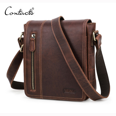 CONTACT'S-حقيبة كتف جلدية للرجال ، حقيبة كتف صغيرة مع رفرف لجهاز iPad مقاس 7.9 بوصة