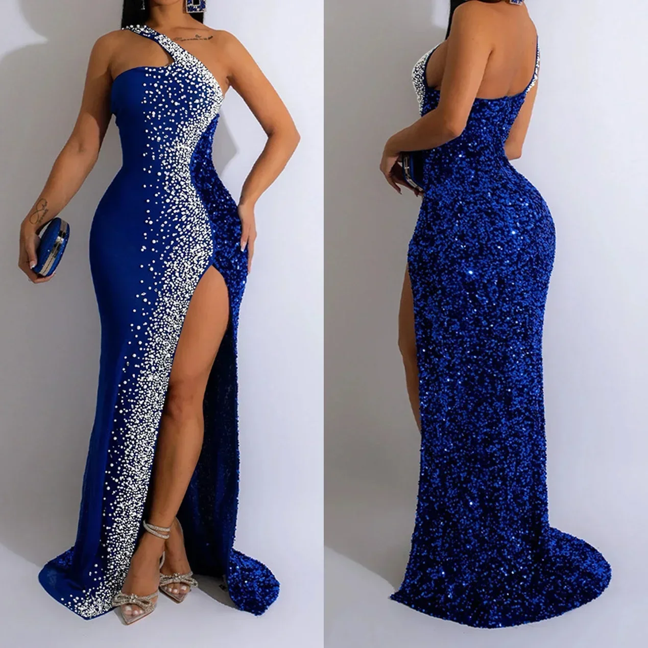 فستان نسائي طويل راقي ومميز باللون الأسود الملكي