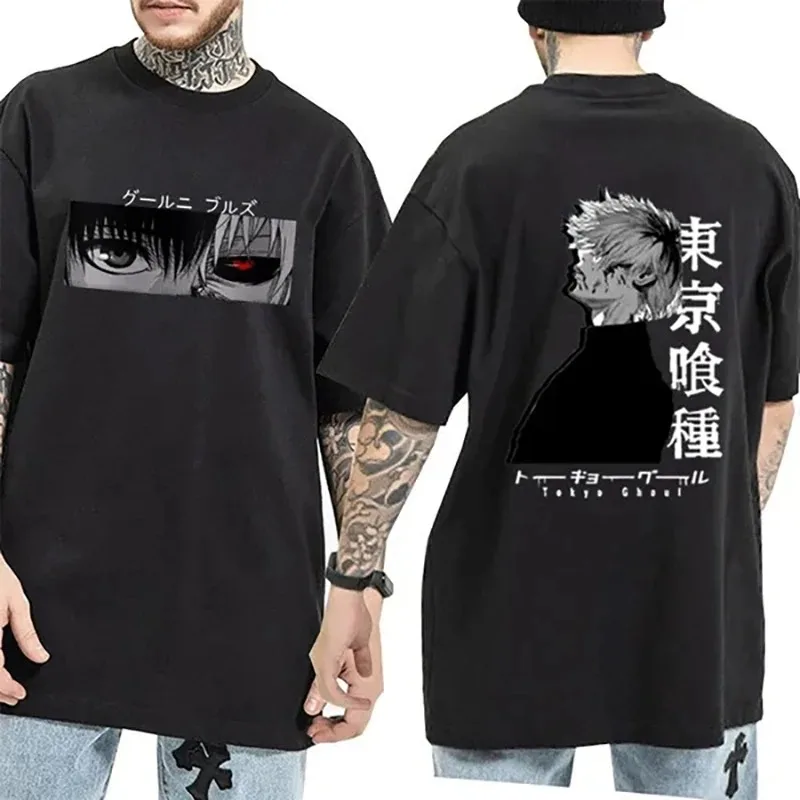 أنيمي Kaneki كين تي شيرت الرجال الصيف القطن موضة شخصية مطبوعة قصيرة الأكمام الصيف عادية فضفاض تي شيرت