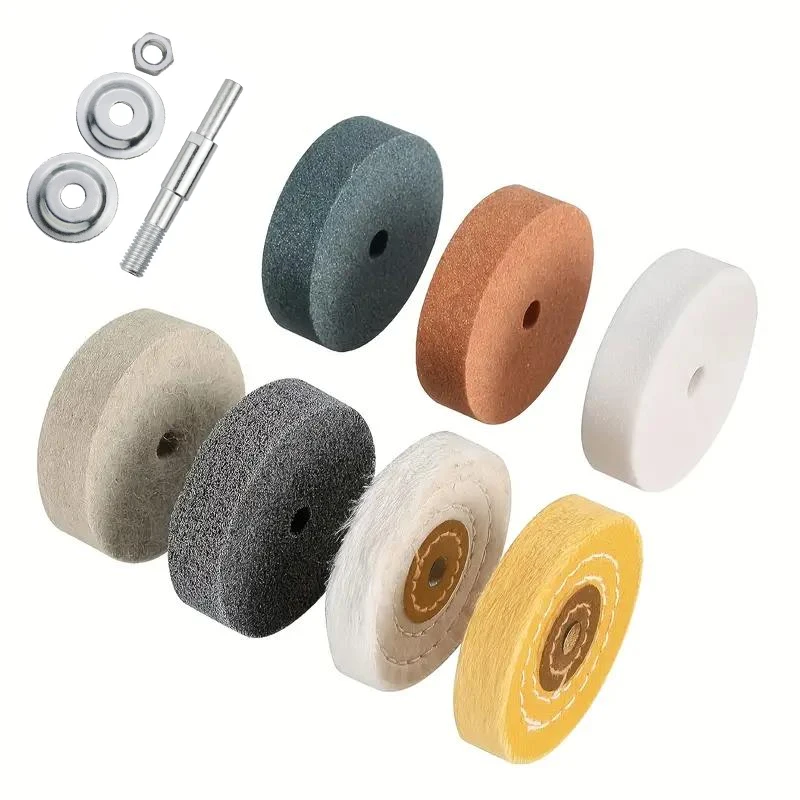 عجلة طحن مكونة من 7 قطع، مجموعة تلميع بقطر 3 بوصات - متوافقة مع آلات التلميع الصغيرة والمثاقب الكهربائية، ومثالية لعمليات الشحذ وإزالة الصدأ.