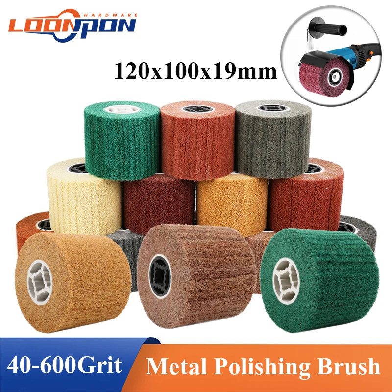 120x20x100 مللي متر غير المنسوجة النايلون جلخ عجلة برفرف فرشاة سلك الرسم تلميع تلميع طبل عجلة للفولاذ المقاوم للصدأ 1 قطعة