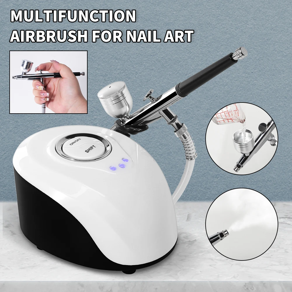 أداة بخاخة مهنية عالية الجودة للرسم على الأظافر ووشم الحرفيين، مع ضاغط هواء وحاقن أكسجين.