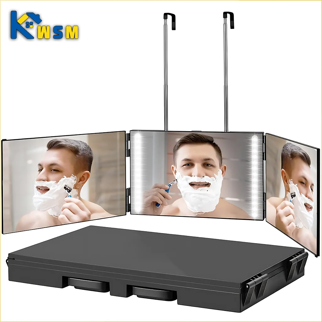 مرآة قابلة للطي ثلاثية الجوانب بزاوية 360 درجة، مرآة مكياج تلسكوبية معلقة، مرآة سيلفي لصبغ الشعر وتضفيره وقصه بنفسك.