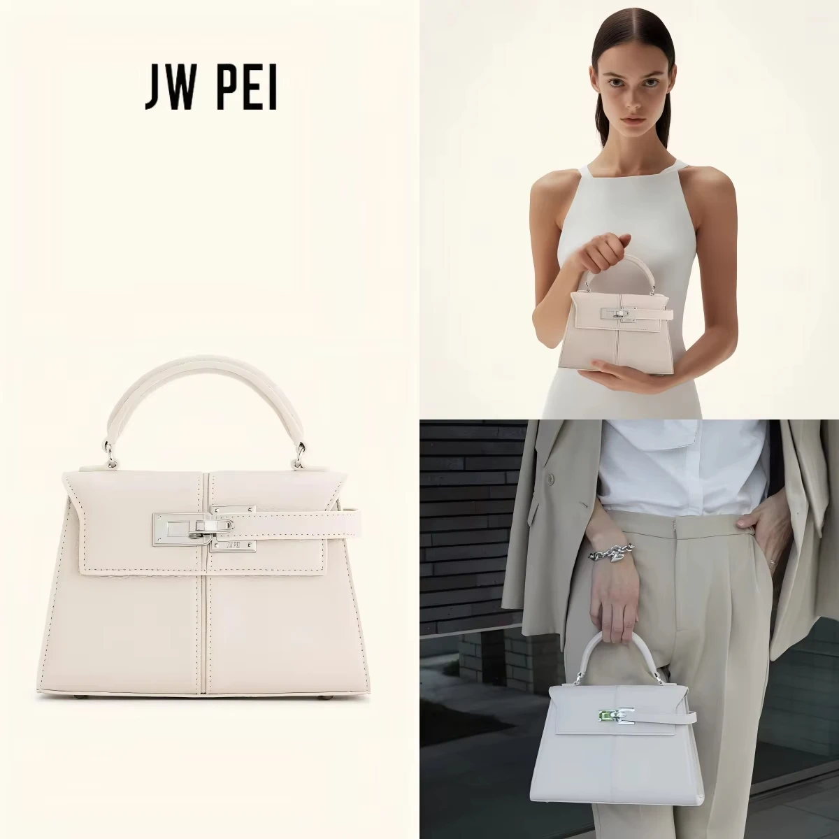حقيبة JW PEI شبه منحرفة، وهي حقيبة كتف نسائية أنيقة مصنوعة من الجلد بنقشة ليتشي بتصميم كلاسيكي، تعتبر حقيبة يد مثالية للسيدات.