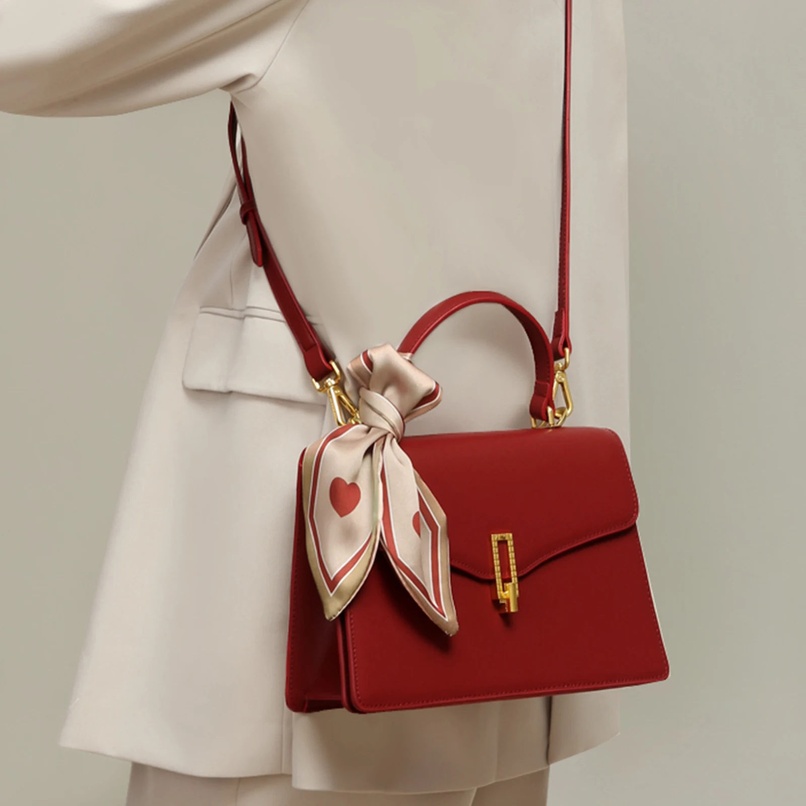 حقيبة توتو الأصلية المصنوعة من جلد مقسم، حقيبة كروسبودي مربعة للنساء، مزينة بوشاح صغير، وحقيبة يد.