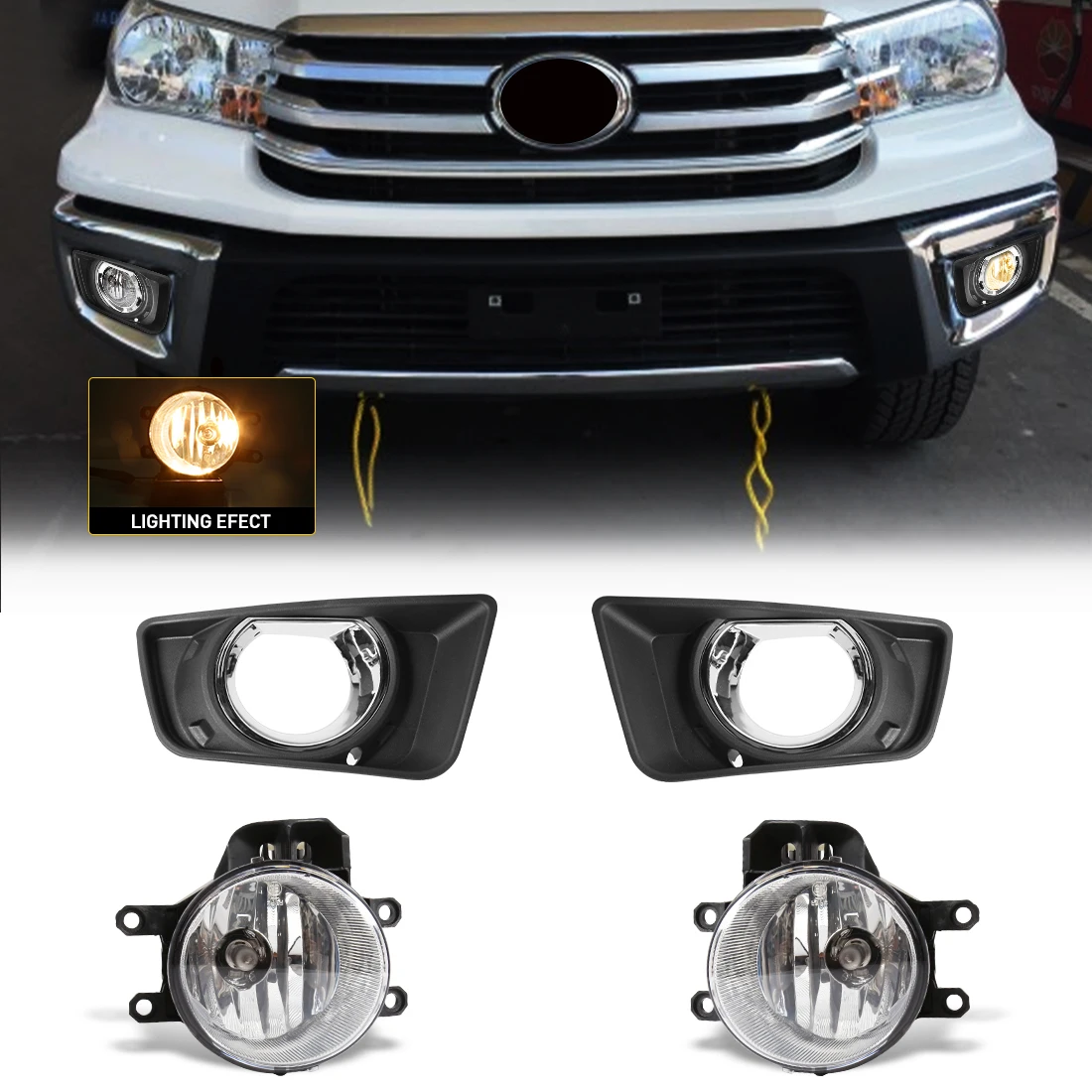 مجموعة مصابيح الضباب الأمامية للسيارة، غطاء حماية لمصباح الهالوجين الأمامي، متوافقة مع تويوتا هايلوكس ريفو، 12 فولت.