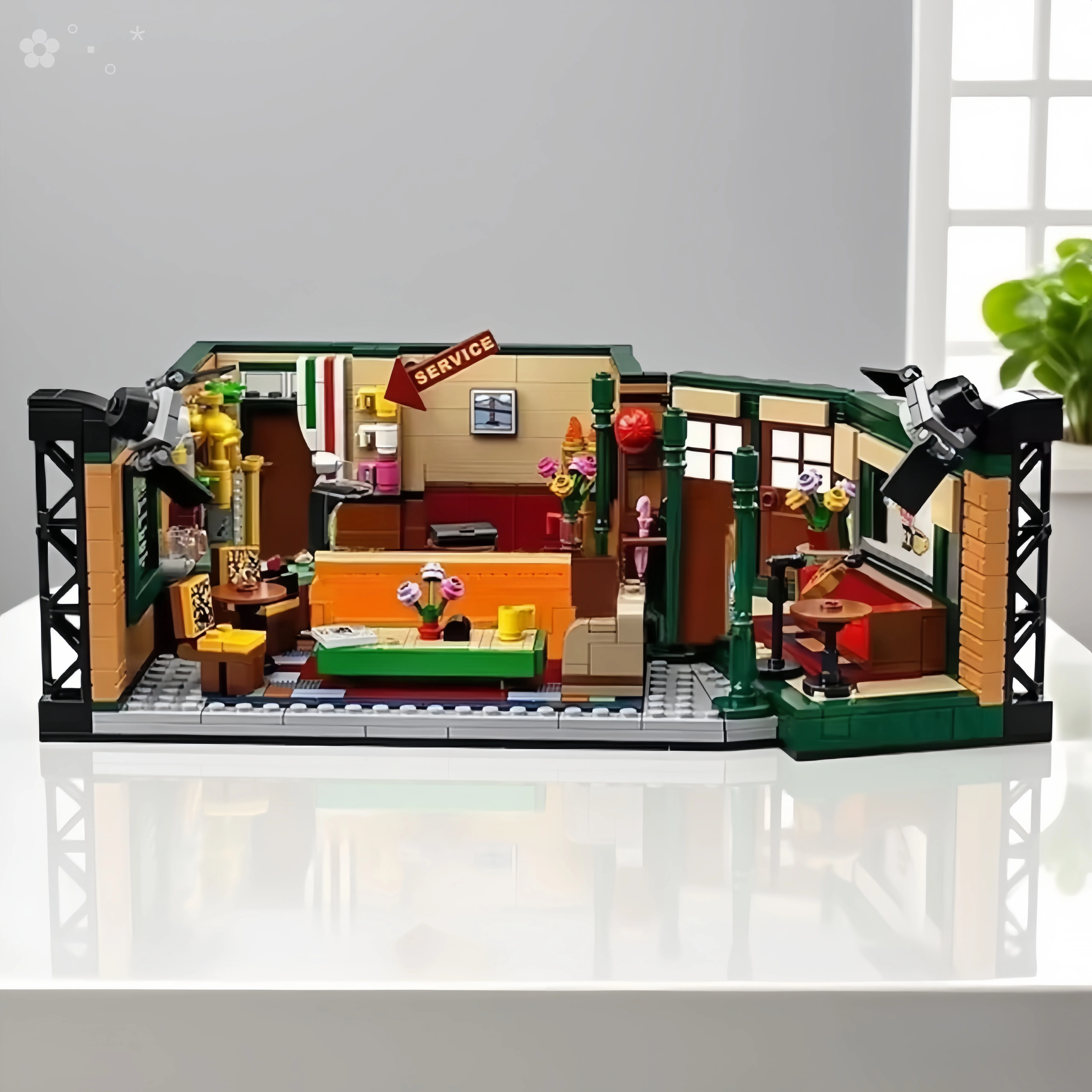 1070 قطعة من مكعبات بناء نموذج شقة الأصدقاء، بما في ذلك نموذج مركز بيرك، مصممة كلعبة. تتضمن المجموعة أرقامًا، مما يجعلها هدية مثالية للاحتفال بعيد الميلاد أو أي مناسبة أخرى.
