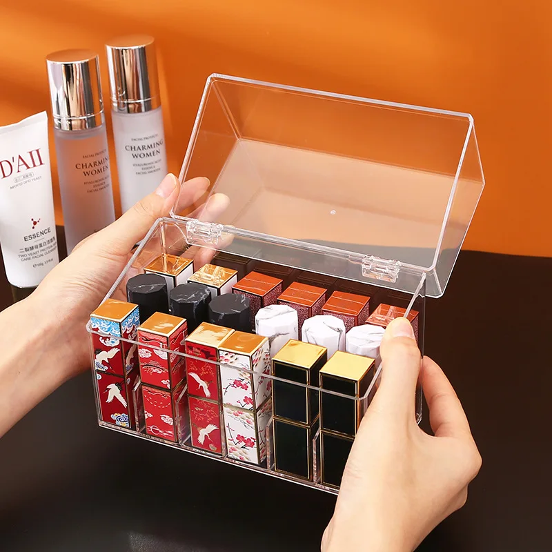 صندوق تخزين أحمر الشفاه لسطح المكتب صندوق ملمع الشفاه متعدد الشبكات لطلاء الأظافر ومستحضرات التجميل الشفافة