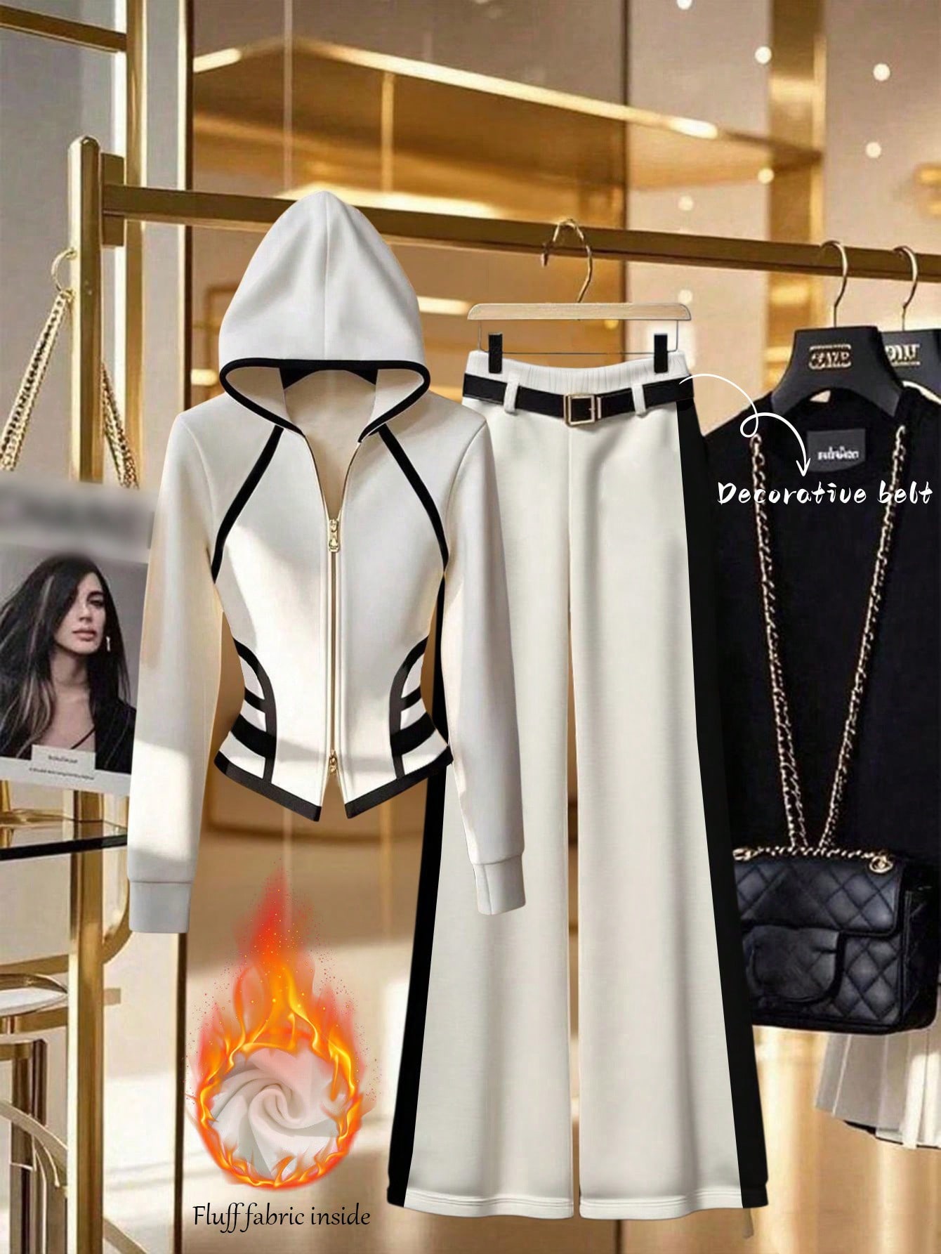 GlowEve بدلة كاجوال من قطعتين للنساء تتكون من جاكيت مقنعة مزودة بسحاب وبنطال، بتصميم ألوان متباينة م